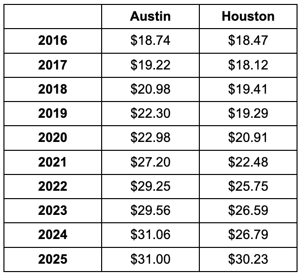 - The cumulative nanny inflation rate for Austin is 65.42%